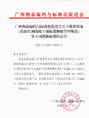 查看详情 >>近日,广西润测检测技术有限公司参与编制的《检验检测机构土壤标准物质管理规范》(T/GBC 43-2025)、《固定污染源废气 二噁英采样管理规范》(T/GBC 44-2025)、《生活垃圾焚烧飞灰 水泥固化稳定二噁英技术规范》(T/GBC...